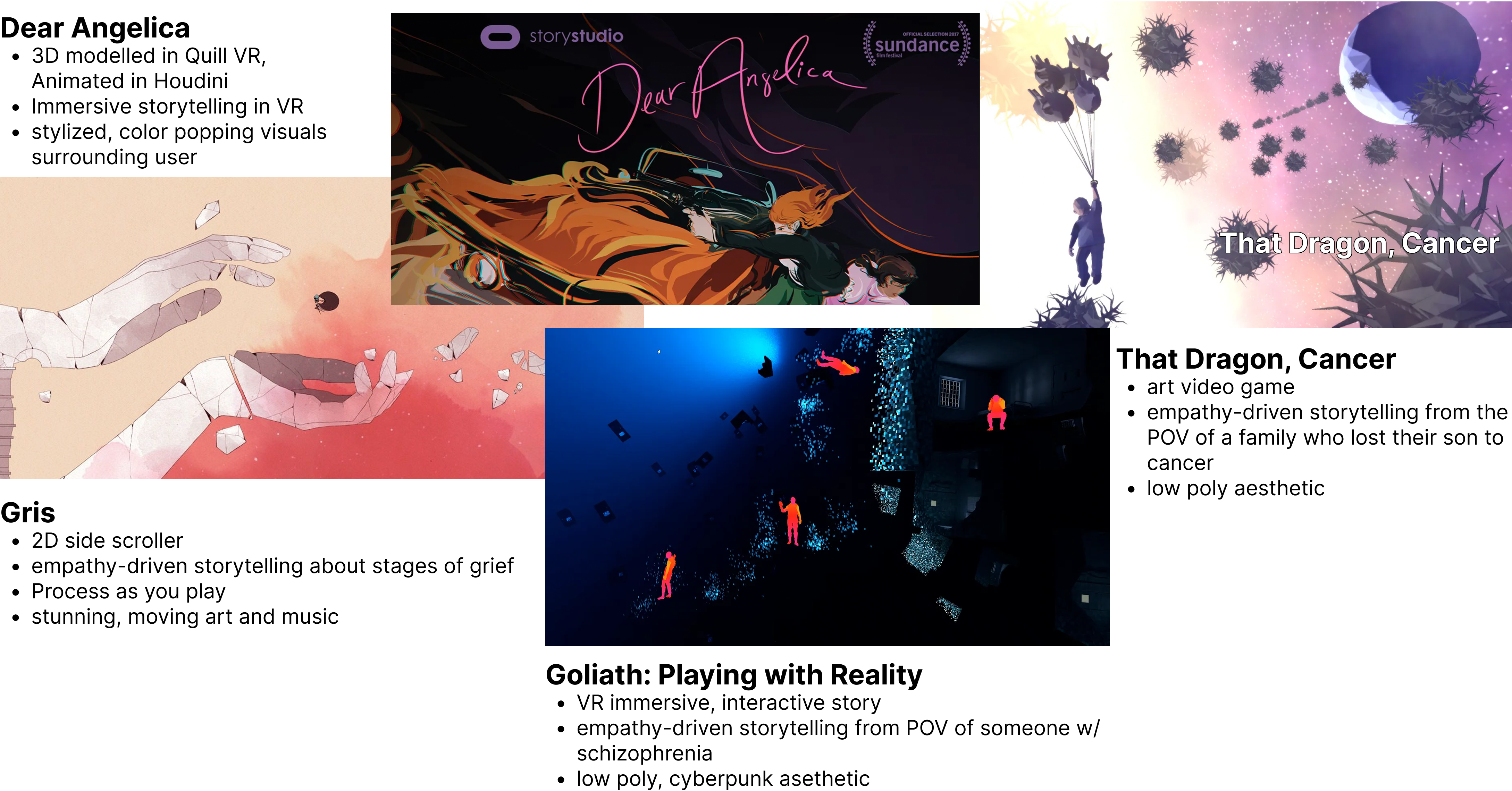 I began by researching existing empathy-driven, immersive, and interactive digital experiences to understand different approaches to point of view perspectives and engagement.